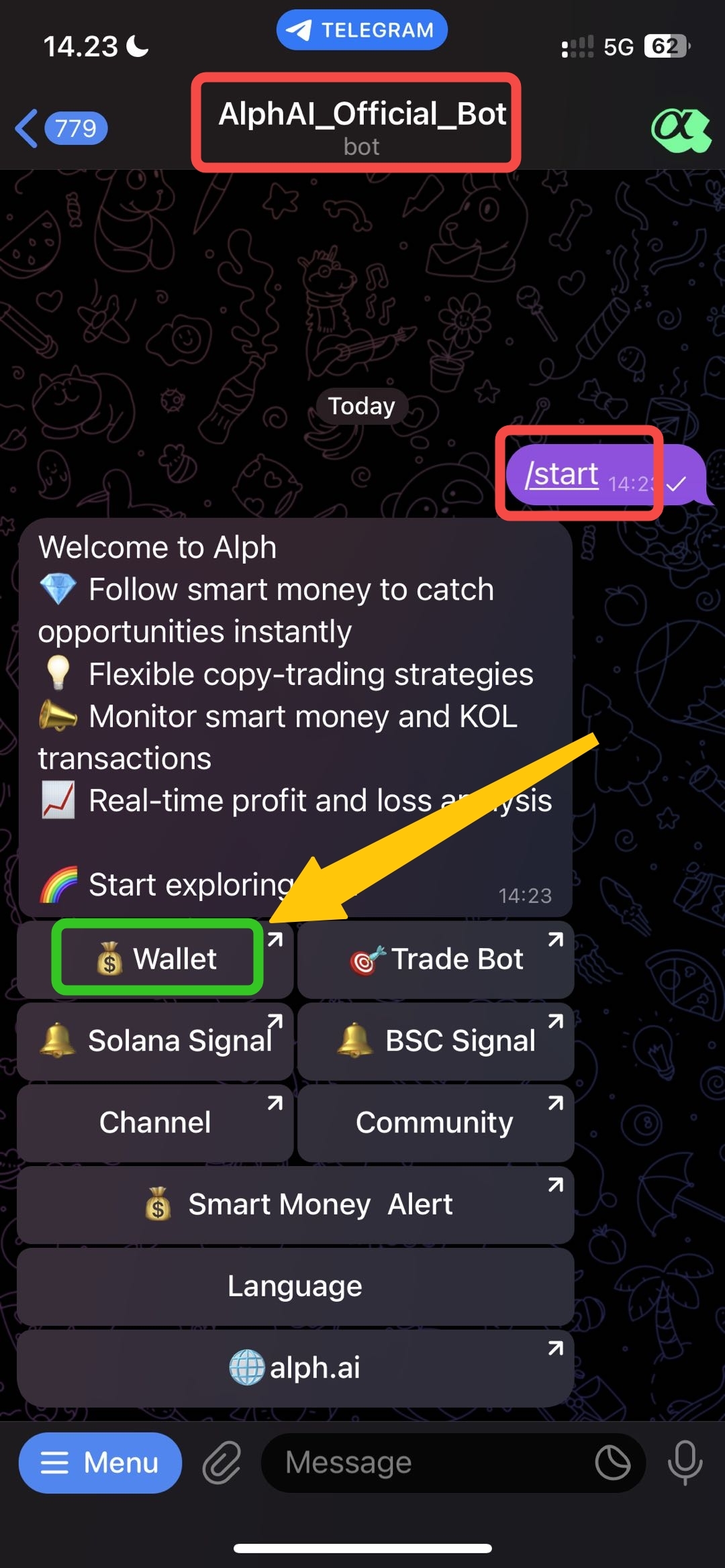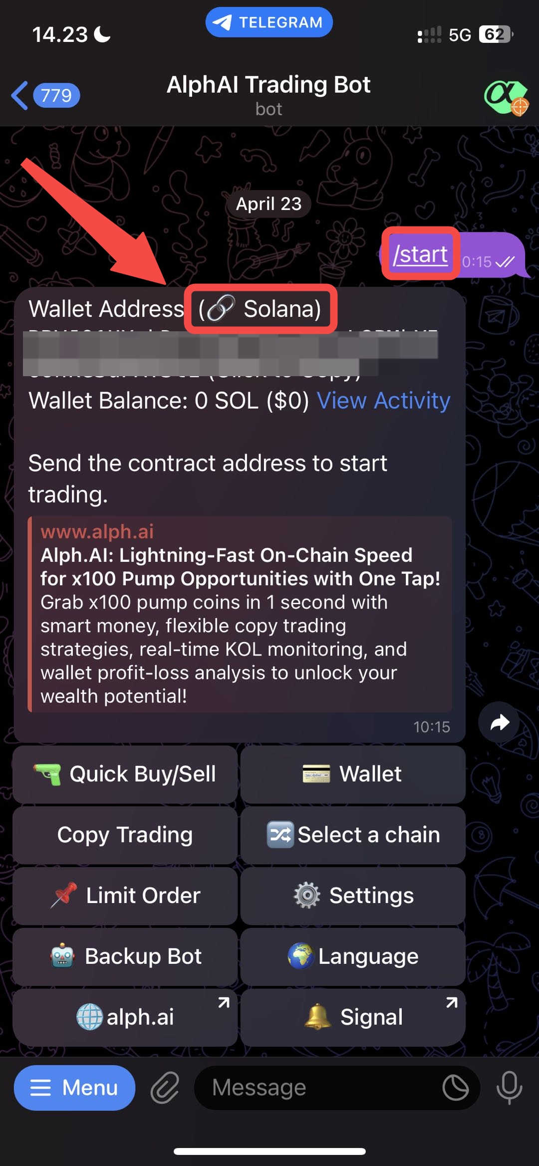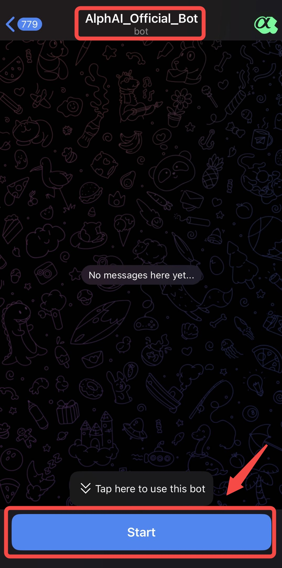 Setelah Anda mengklik tautan Alph bot, silakan klik /start untuk menggunakan Alph bot.