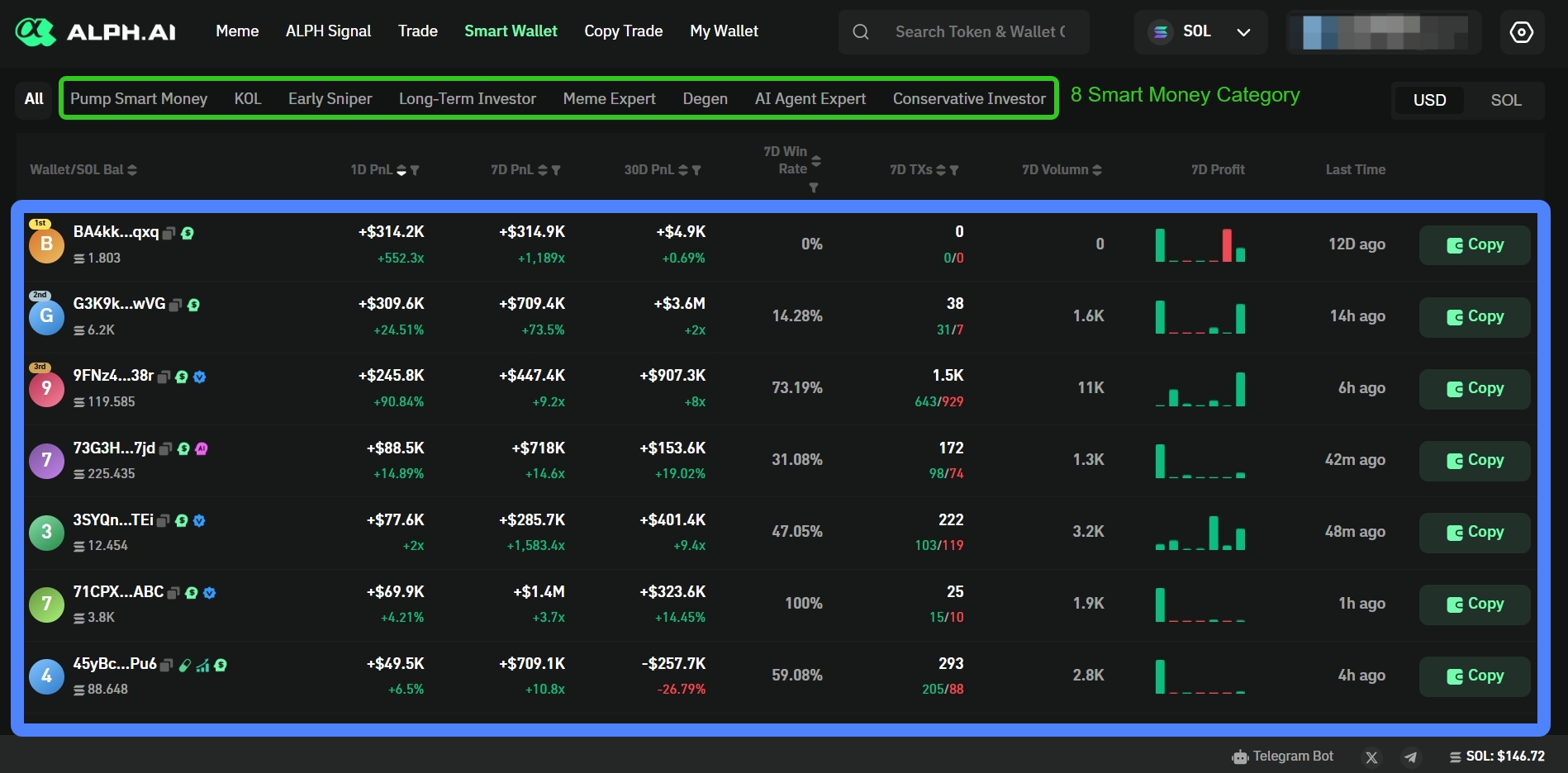 Dapatkan notifikasi saat smart money mulai bergerakβbaik saat mereka ape-in ke memecoin atau bersiap untuk pump berikutnya. Nggak perlu tebak-tebakan lagi, nggak bakal telat. Biarkan Alph AI lacak arus Smart Money supaya kamu bisa ikut dengan percaya diri dan ride the waves seperti degen sejati.
